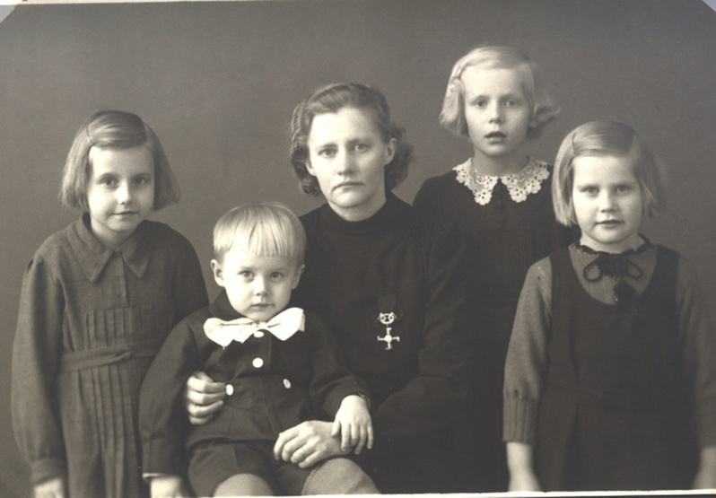 ![]() Sotaleski Kerttu Ahti (os. Lahti ) s. 17.3.1910 Lapset Leila, Lea, Liisa ja Mikko | ![]() Saima ja Ahti Tomunen ja Ossi-poika. Kuvan omistaa Liisa Tallbacka |