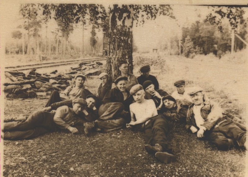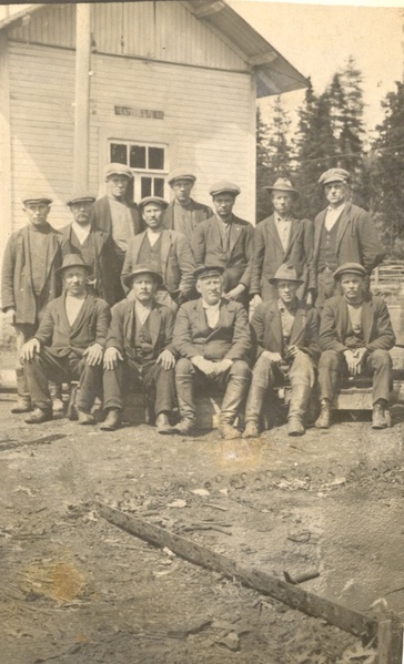 ![]() Miehiä lepotauolla Inhan satamassa v. 1925. Kuvassa oikealla Vihtori Kangas. Kuvan omistaa Ritva Vainio | ![]() Satamatyöläiset Inhan aseman edustalla v. 1925. Kuvassa vasemmalla edessä Vihtori Kangas. Kuvan omistaa Ritva Vainio |