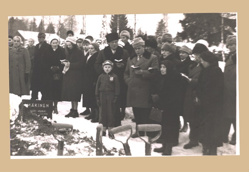 ![]() Olga Akonniemen haudalta. Kuvassa kolmas oikealta Kalle Rasinmäki. Kuvan omistaa Anna-Liisa Teivaanmäki | ![]() Kiertokoululaisia keväällä 1919. Kuvassa edessä ensimmäinen oikealta Kalle Rasinmäki. Kuvan omistaa Anna-Liisa Teivaanmäki |
