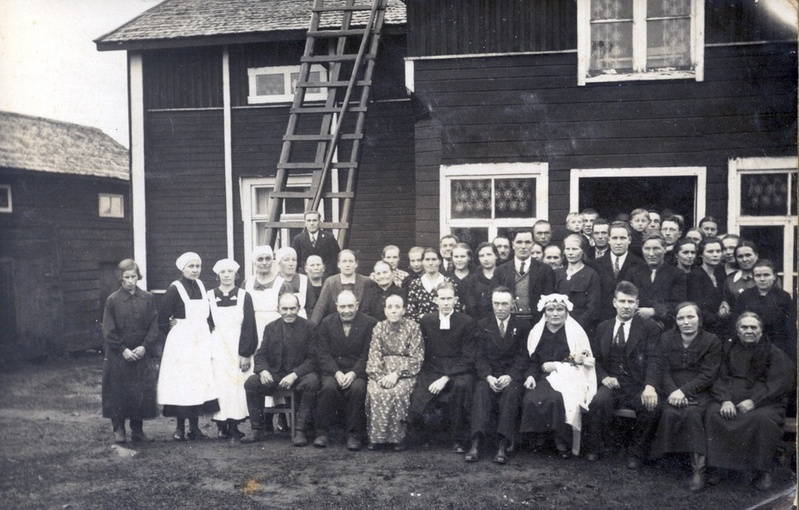 ![]() Pienviljelijäyhdityksen talon edessä luultavasti äitienpäivillä. Lasten takana istuu Itä-Ähtärin vanhoja emäntiä. Neljäs vasemmalla Wilhelmiina Teivaanmäki , syntyisin Leikkari, toinen oikealta Olga Mytkäniemi. Kuvan omistaa Anna-Liisa Teivaanmäki | ![]() Häät Leikarissa. Oikealla eturivissä istuu Wilhelmiina Teivaanmäki, syntyisin Leikari 16.6.1865. Vasemmalla Tuomas. Sulhanen nimeltään todennäköisesti Sulo. Kuvan omistaa Anna-Liisa Teivaanmäki |