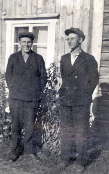 ![]() Elma s. Rintala ja Lauri Murtomäki. Kuvan omistaa Anna-Liisa Teivaanmäki | ![]() Taito Teivaanmäki, Musti Mäki, Teivaanmäki, Eino Akonniemi, Paavo Koivulehto, Kalle ja Tuomas Teivaanmäki. Kuvan omistaa Anna-Liisa Teivaanmäki |